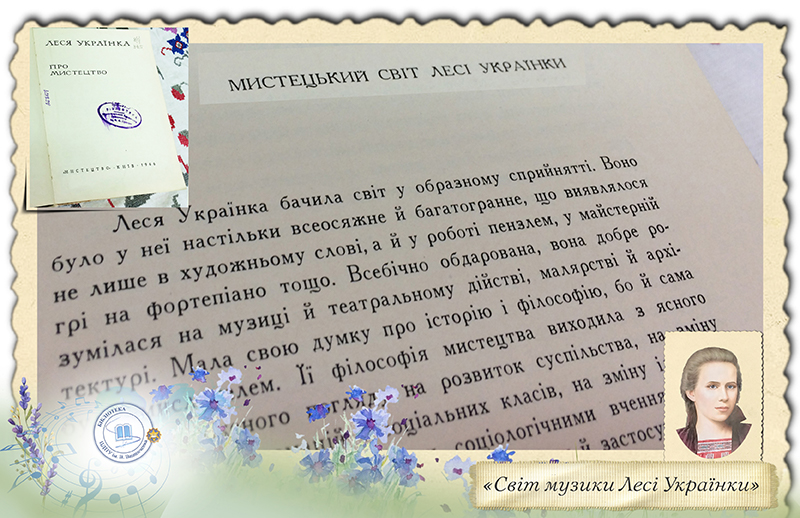 З нагоди 150-річниці від дня народження поетеси на абонементі мистецького факультету експонується підбірка творів з музичної спадщини композиторів, яких надихала співуча муза Лесі Українки.