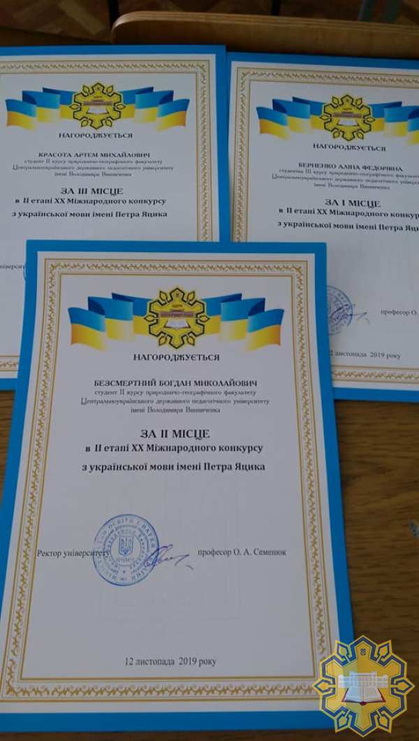 НАГОРОДЖЕННЯ ПЕРЕМОЖЦІВ ІІ ТУРУ ХХ МІЖНАРОДНОГО КОНКУРСУ З УКРАЇНСЬКОЇ МОВИ ІМЕНІ ПЕТРА ЯЦИКА