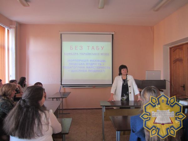 Кафедра української мови Центральноукраїнського державного педагогічного університету імені Володимира Винниченка 11 жовтня 2018 року провела іміджеву презентацію «Без табу». Підзаголовок: «Корпорація фахівців: людська мудрість + педагогічна майстерність = щаслива людина?»
