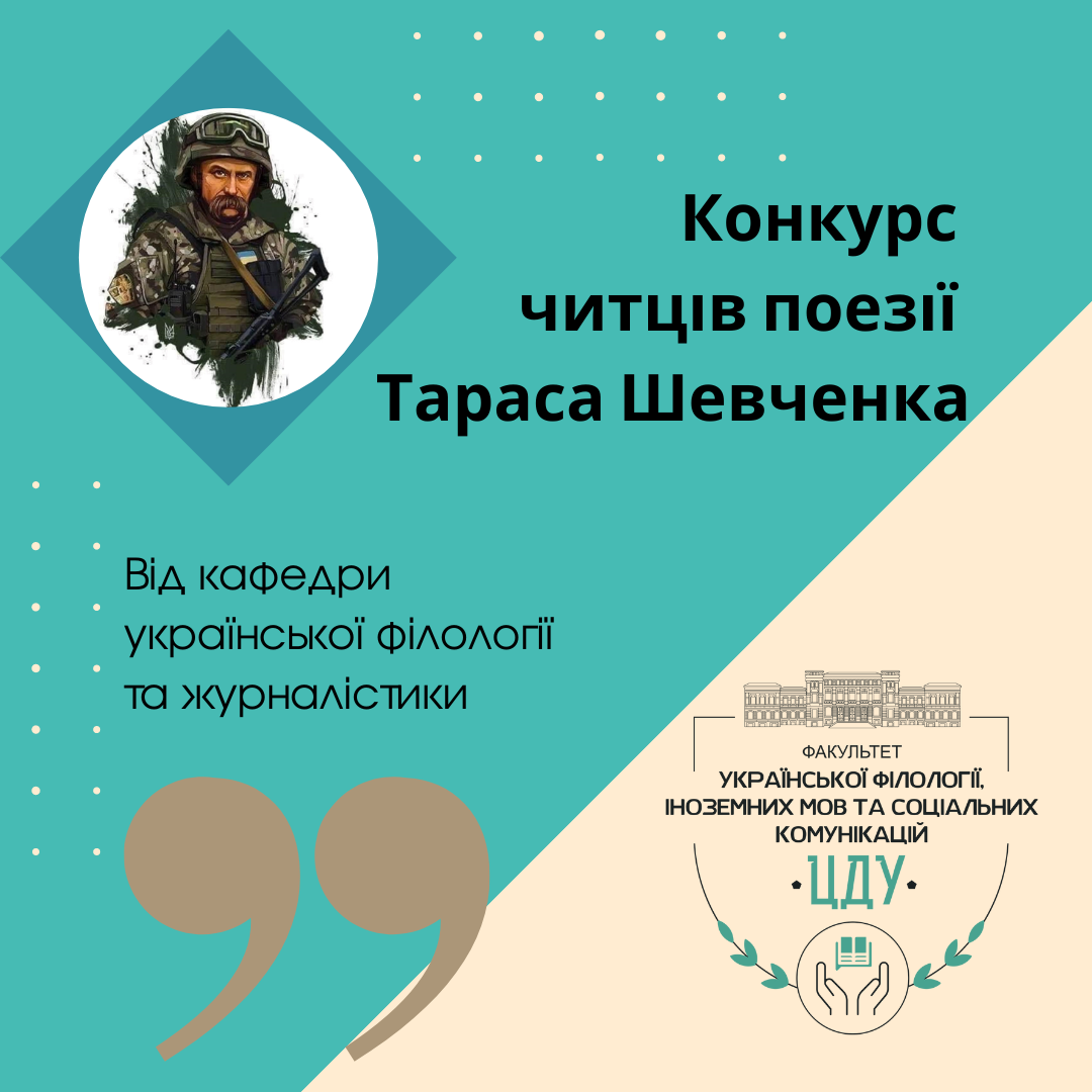 Кафедра української філології та журналістики факультету філології, іноземних мов та соціальних комунікацій ЦДУ імені Володимира Винниченка щиро дякує усім, хто взяв участь у конкурсі декламаторів творів Тараса Шевченка.