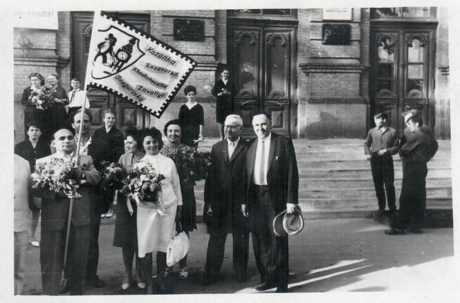 18. Група "А" з викладачами факультету англійської мови. Останній дзвоник (1966 р.)