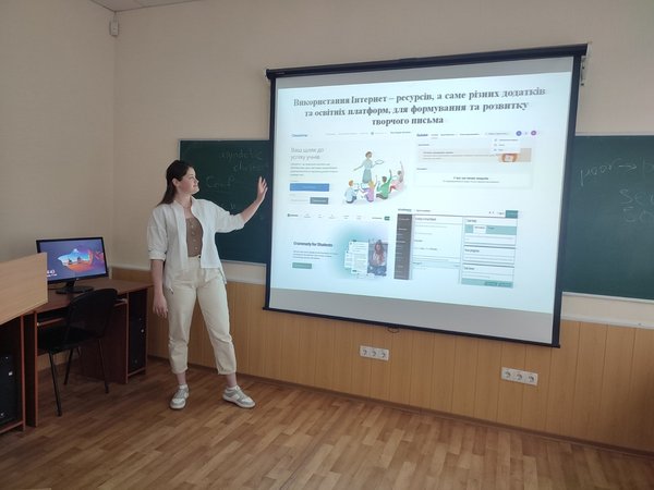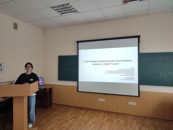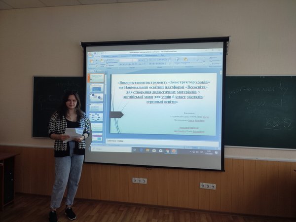 Представлені роботи присвячені різноманітним аспектам формування англомовної комунікативної та соціокультурної компетентності учнів 5–9 класів, зокрема із застосуванням сучасних освітніх ресурсів та платформ.  Через повітряну тривогу частина захисту проводилась в укритті, що не завадило успішному представленню наукових робіт та їх обговоренню.