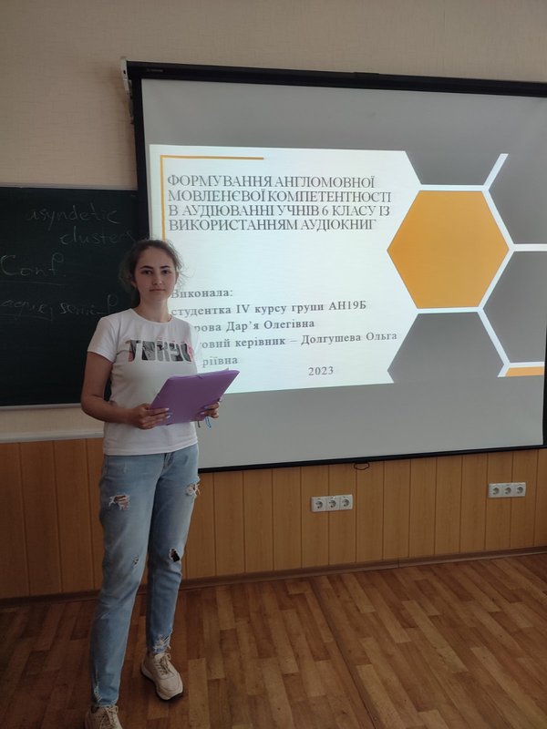 17 травня 2023 року на кафедрі германських мов, зарубіжної літератури та методик їхнього навчання відбувся захист курсових робіт. Студенти групи АН19Б під керівництвом доцентів кафедри Ольги Долгушевої та Вікторії Кочубей провели власні наукові дослідження з методики навчання англійської мови в середній школі.