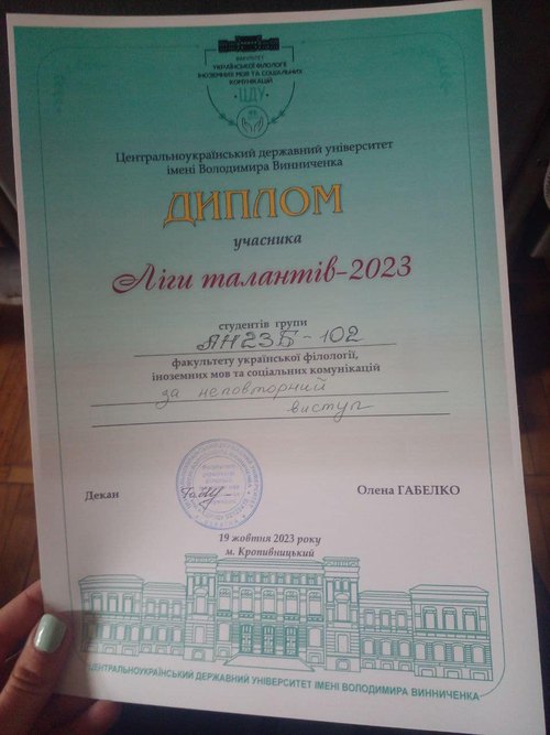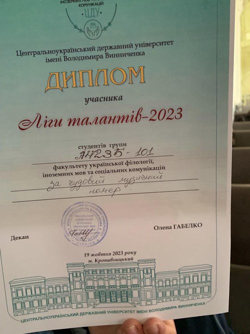19 жовтня 2023 року в актовій залі Центральноукраїнського університету імені Володимира Винниченка відбувся концерт «Ліга талантів», у якому взяли участь студенти першого курсу факультету української філології, іноземних мов та соціальних комунікацій.