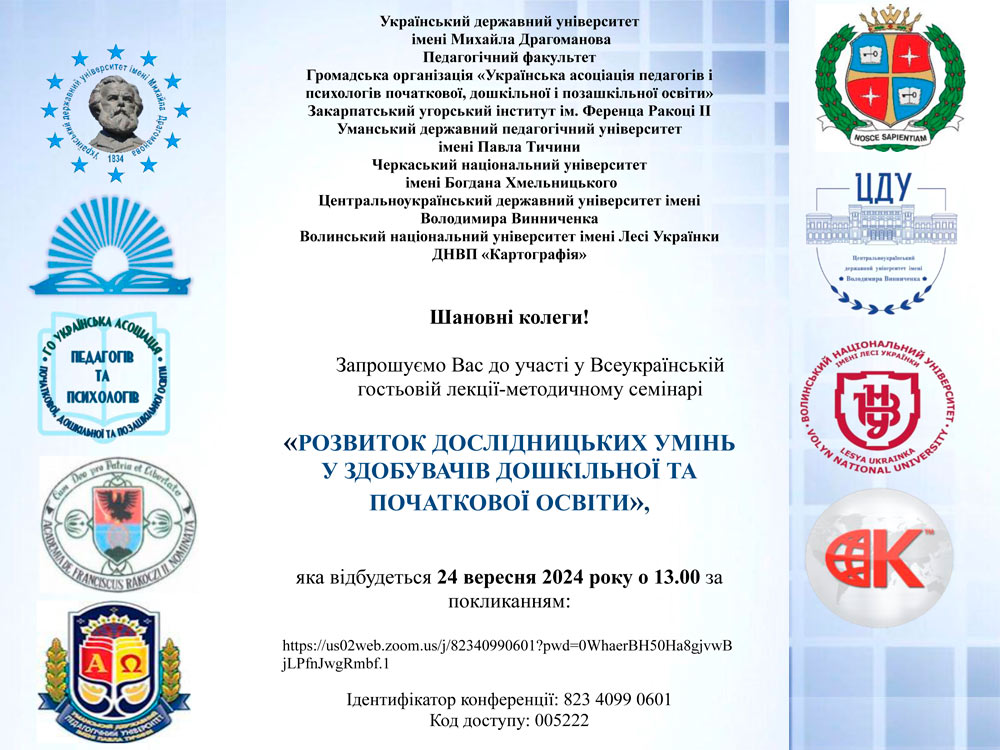 Запрошуємо Вас до участі у Всеукраїнській гостьовій лекції-методичному семінарі «Розвиток дослідницьких умінь