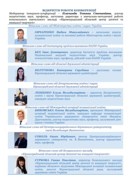 Відбулася І Всеукраїнська науково-практична інтернет-конференція «Вдосконалення позашкільної освіти в умовах сучасних трансформацій»
