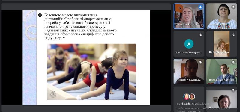 Валерія ДЕМЧЕНКО – студентка ІV курсу з доповіддю «Система фізичного виховання в сучасній школі». Науковий керівник – Олександр ПЕРЦОВ – кандидат педагогічних наук, старший викладач кафедри педагогіки та менеджменту освіти; Віра МОМОТ – студентка ІV курсу з доповіддю «Фізичний розвиток учнів молодшого шкільного віку з затримкою психічного розвитку через взаємодію фізичного і естетичного виховання». Науковий керівник – Анастасія МЕЛЬНІК, кандидат педагогічних наук, доцент, доцент кафедри теорії і методики фізичного виховання; Аліна ЖУРБА – студентка ІV курсу з доповіддю «Розвиток та підтримання гнучкості у художній гімнастиці». Науковий керівник – Наталія СОБКО, кандидат наук з фізичного виховання та спорту, доцент, доцент кафедри теорії та методики олімпійського і професійного спорту; Олексій МАНАСТИРНИЙ – студент ІV курсу з доповіддю «Ідеї трудового виховання в історії педагогіки». Науковий керівник – Олександр ПЕРЦОВ – кандидат педагогічних наук, старший викладач кафедри педагогіки та менеджменту освіти; Олег Конюх – студент ІV курсу з доповіддю «Оптимізація фізичного виховання школярів на уроках фізичної культури». Науковий керівник – Ольга ШЕВЧЕНКО, кандидат педагогічних наук, доцент, завідувач кафедри теорії і методики фізичного виховання; Діана Самохіна – студентка ІV курсу з доповіддю «Причини і профілактика травматизму на уроках фізичної культури». Науковий керівник – Ірина СУНДУКОВА, кандидат психологічних наук, доцент, доцент кафедри теорії і методики фізичного виховання; Андрій ПТАШИНСЬКИЙ – студент ІІІ курсу з доповіддю «Тенденції розвитку оздоровчого велосипедного спорту сучасності». Науковий керівник – Олена МАРКОВА, кандидат педагогічних наук, доцент, доцент кафедри теорії і методики фізичного виховання; Дар’я Зарудня – студентка І курсу з доповіддю «Особливості організації занять зі спортивного орієнтування в умовах дистанційного навчання». Науковий керівник – Наталія ЩЕРБАТЮК, Заслужений тренер України з радіоспорту, старший викладач кафедри теорії і методики фізичного виховання.