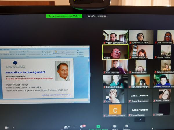 25 жовтня 2022 року на платформі ZOOM відбулася гостьова лекція польського вченого, доктора габілітованого у галузі соціальних наук, професора Валерія Окулича-Казаріна на тему: «Інновації в менеджменті: економічний, соціальний та психологічні аспекти». Цей захід було організовано в рамках Договору про співпрацю між Центральноукраїнським державним педагогічним університетом ім. В.Винниченка і Донецьким національним університетом ім. В.Стуса та викладачів, студентів вишів-партнерів. В науковому заході брали участь близько 100 осіб.