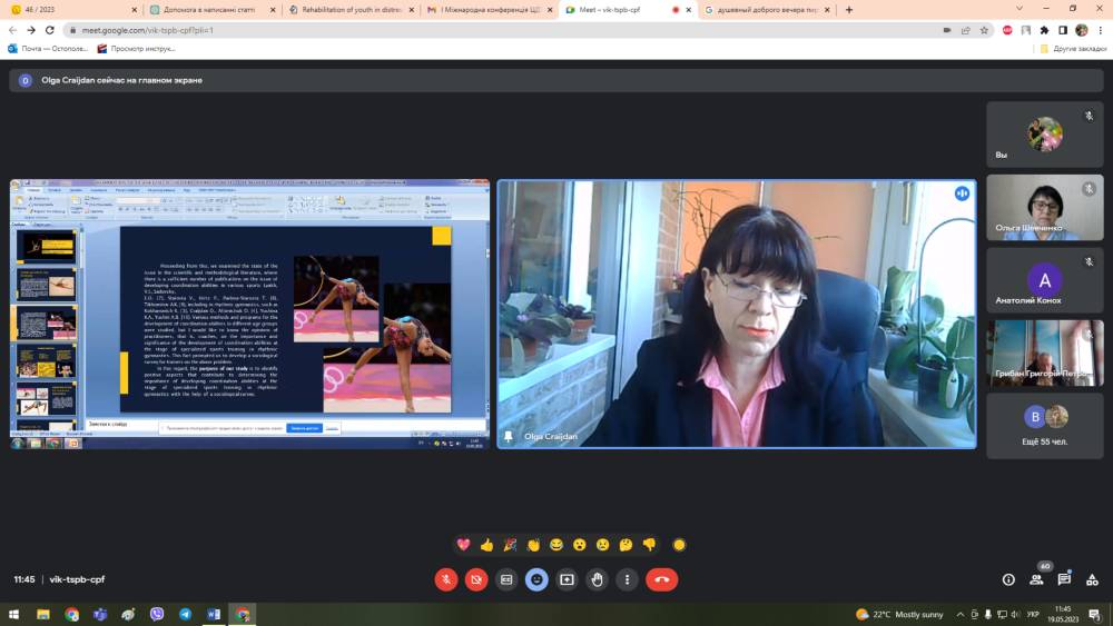 1. Доктор педагогічних наук, доцент департаменту боротьби і гімнастики ДУФВіС (Кишинів, Республіка Молдова) Ольга КРАЙЖДАН, доповідь: «Обґрунтування важливості виховання координаційних здібностей на профільному етапі підготовки з гімнастики художньої».