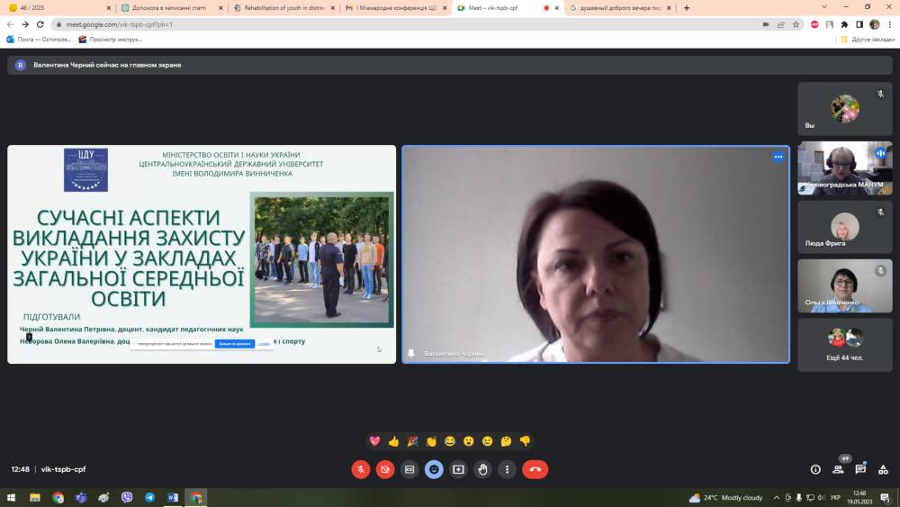 4. Директор Комунального закладу «Центральноукраїнський науковий ліцей-інтернат Кіровоградської обласної ради», кандидат педагогічних наук Неля МАЗУР та кандидат педагогічних наук, доцент кафедри теорії і методики фізичного виховання ЦДУ ім. В. Винниченка Валентина ЧЕРНІЙ, доповідь: «Сучасні аспекти викладання Захисту України в закладах загальної середньої освіти».