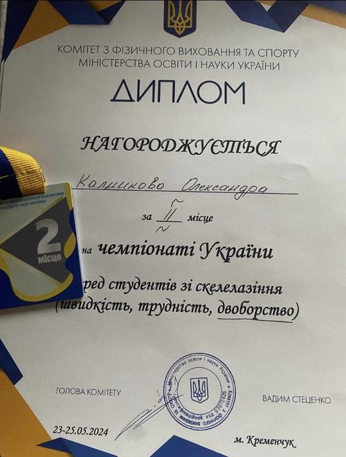 З 23 до 25 травня 2024 року в м. Кременчуку відбувся чемпіонат України зі скелелазіння серед студентів (вид програми швидкість, трудність, двоборство).