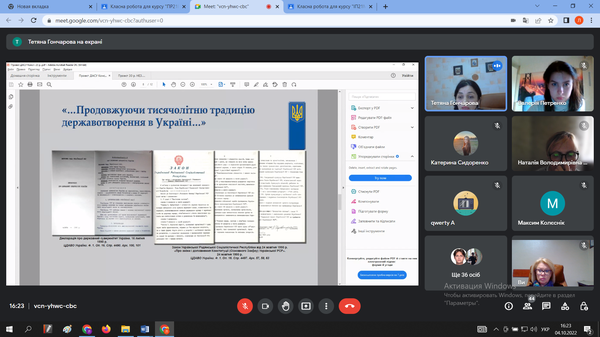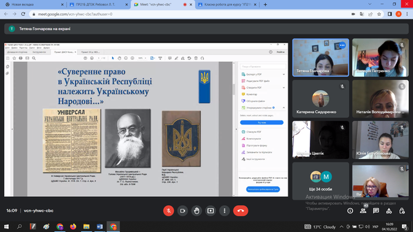4 жовтня 2022 року студенти відвідали онлайн-виставку архівних матеріалів «Документально-історичний фотонарис — Незалежність України: як це було». Віртуальне видання репрезентувала Тетяна Гончарова, начальник відділу інформації Державного архіву Кіровоградської області.
