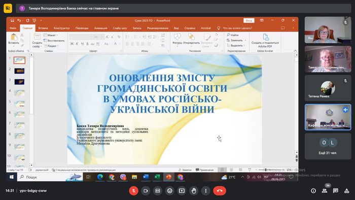 Особливий інтерес учасників заходу викликали виступи на такі теми: інтеграція як орієнтир в реалізації Державного стандарту базової середньої освіти в частині громадянської та історичної освітньої галузі, модернізація шкільної суспільствознавчої освіти на основі європейського досвіду, види навчання історії та громадянської освіти, оновлення змісту громадянської освіти в умовах російсько-української війни тощо.