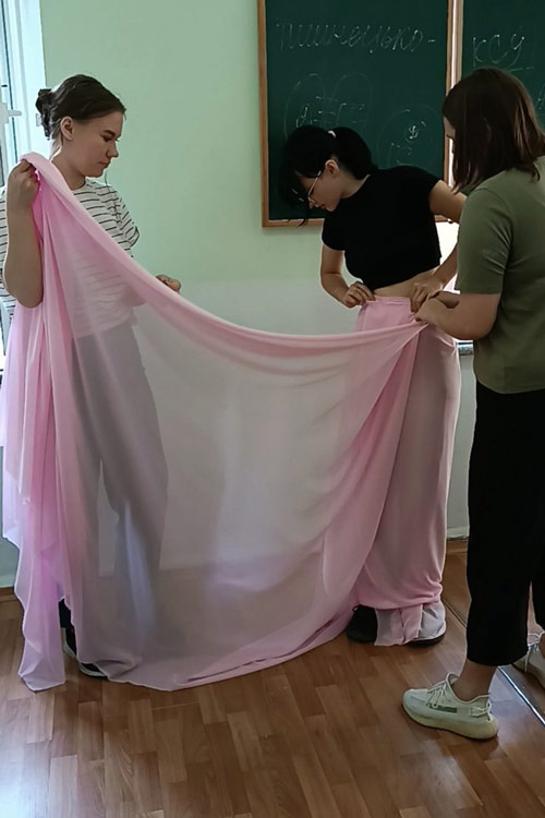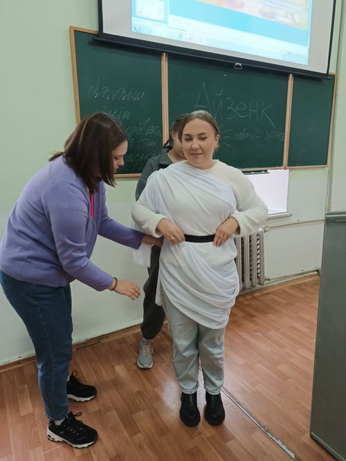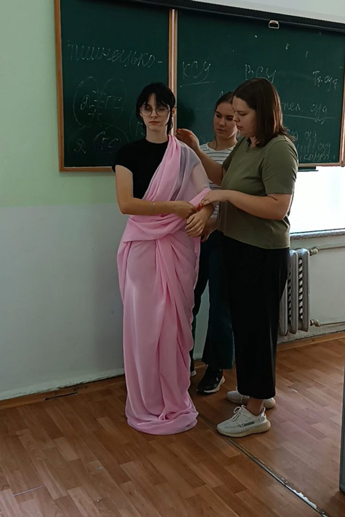 Вони знайомляться зі стародавньою модою, прикрасами, косметичними засобами, харчуванням, теоретичними розробками та практичною медициною, ідеологічними уявленнями та першими масовими організаціями святкувань на честь божеств, розвагами у повсякденному житті дітей і дорослих. Програма курсу побудована таким чином, щоб студенти могли реалізувати всі свої теоретичні знання, уподобання та на практиці представити результати своєї діяльності. Кожне заняття має проблемне питання для обговорення, де студенти висловлюють свою власну думку та дискутують щодо окремих положень. Персональна зацікавленість темою передбачає вибір доповідей, які готуються із презентаціями. Окремою частиною є практична реалізація. Сьогоднішні другокурсники представляли одяг Стародавньої Індії (сарі), Стародавньої Греції (хітон) та Стародавнього Риму (тога). Технологія одягання викликала неабиякий інтерес та емоційно занурила студентів у далекі тисячоліття, де такий одяг був на вершині моди.