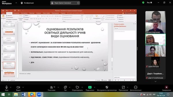 Зверталася увага студентів на види оцінювання учнів: формувальне, яке передбачає використання різних форм (самооцінювання, взаємооцінювання (оцінювання роботи в групах/парах, під час захисту проєктів, оцінювання вчителем із використанням карток, піктограм, вікторин, інтелект-карт тощо), підсумкове (семестрове, річне). Було наголошено на критеріях оцінювання учнів з історії, які включають три групи: орієнтація в історичному часі і просторі та виявлення взаємозв’язків і явищ; робота з джерелами; формування толерантності, громадянської позиції. Самохвал І.В. продемонструвала приклад уроку з історії України за темою: «Культура бароко. Прогулянка галереєю», де можна було побачити інтерактивні підходи та методичні новації вчителя щодо викладу історичного матеріалу й зацікавлення учнів до уроку.