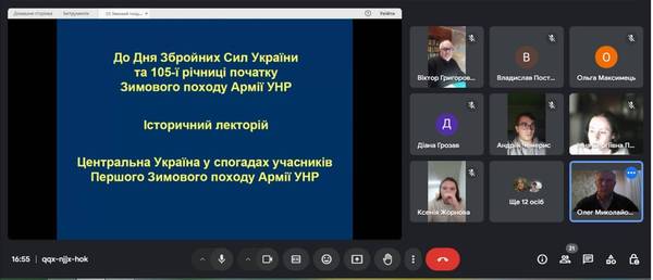 6 грудня з нагоди Дня Збройних сил України та 105-ї річниці початку Першого Зимового походу Армії УНР для студентів-істориків першого і третього курсів був проведений доцентом кафедри історії України та всесвітньої історії В.Г. Грінченком історичний лекторій на тему: «Центральна Україна у спогадах учасників Першого Зимового походу Армії УНР».