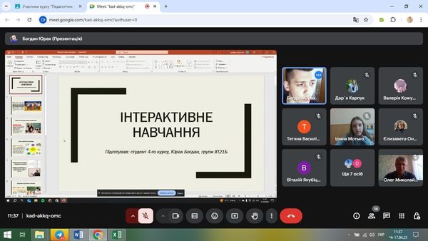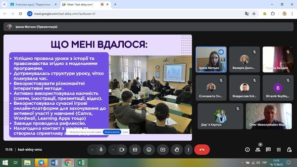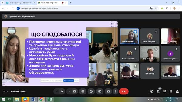 17 квітня в дистанційному форматі відбулася підсумкова конференція за результатами виробничої педагогічної практики студентів-істориків IV курсу першого (бакалаврського) рівня вищої освіти факультету історії, бізнес-освіти та права, яка проходила в термін із 03 лютого до 14 березня 2025 року у загальноосвітніх закладах м. Кропивницького, Кіровоградської та Дніпропетровської областей згідно розподілу у 10 базових школах міста (22 особи) та за індивідуальним планом (13 осіб).