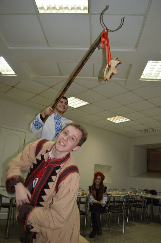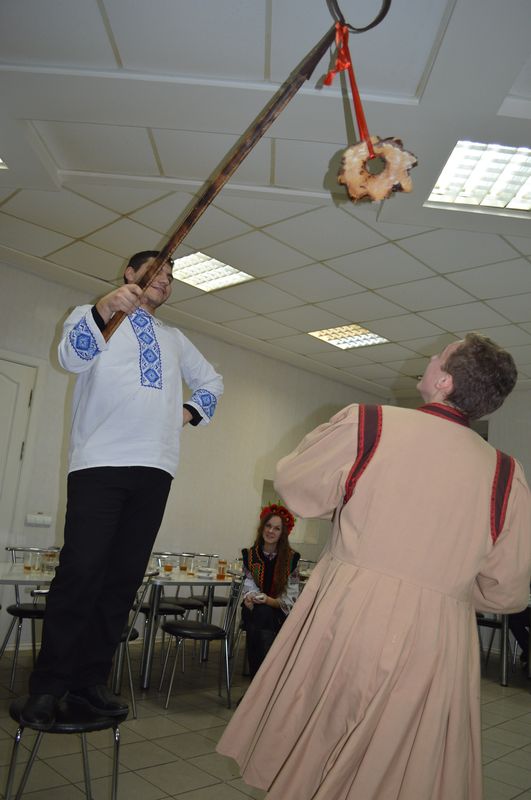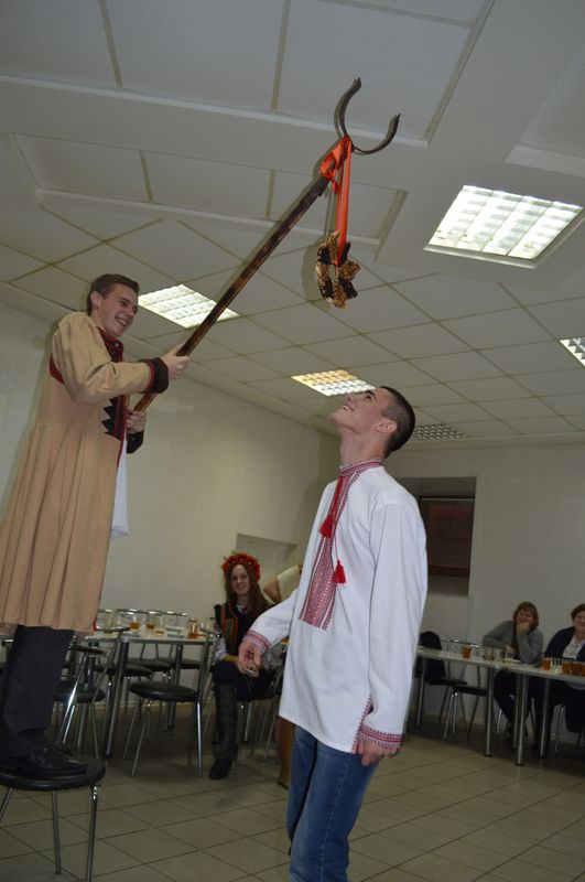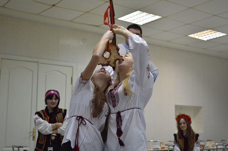 Далі почалися забави, пов’язані із кусанням Калити. Обрали пана калитинського, який тримав кінець стрічки, прив’язаної до Калити і перекинутої через рогач. Головне завдання калитинського – будь-що розсмішити гостя. Тим більше, що студенти допомагали йому в цьому, задаючи кумедні загадки, кидаючи дотепи. А вкусити калиту не так просто! Вартовий несподівано смикає за мотузок – і Калита летить вгору! Вважається, що той, хто все-таки примудрився вкусити Калиту, цього року обов’язково одружиться. Після розваг всі були запрошені до святкового столу з варениками та узваром, пирогом та гостинцями.Настрій в усіх був дуже веселим, дружнім, родинним. А завершився вечір дискотекою.