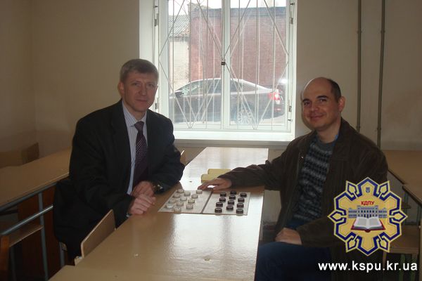 17 березня продовжились змагання, але вже із шашок. Факультетську команду представляли доцент кафедри всесвітньої історії Олег Миколайович Марченко (дві партії виграв у викладача кафедри музично-теоретичних та інструментальних дисциплін Сергія Олександровича Сметани і доцента кафедри теорії та методики олімпійського і професійного спорту Андрія Леонідовича Бабенка та програв сильному гравцю старшому викладачу кафедри прикладної математики, статистики та економіки Олегу Петровичу Макарчуку), доцент кафедри державно-правових дисциплін та адміністративного права Володимир Миколайович Супрун (одну партію програв викладачу кафедри фізичного виховання і оздоровчої фізичної культури Олександру Володимировичу Сукачову й одну звів у нічию з працівником інформаційного відділу Андрієм Бондарем) та доцент кафедри державно-правових дисциплін та адміністративного права Тетяна Миколаївна Мілова (одну партію виграла у доцента кафедри образотворчого мистецтва та дизайну Тетяни Володимирівни Фурсикової та дві програла доценту кафедри прикладної математики, статистики та економіки Зої Петрівни Халецькій та викладачу кафедри фізичного виховання і оздоровчої фізичної культури Юлії Анатоліївні Ковальовій). Загальний результат змагань з шашок такий: перше місце – команда фізико-математичного факультету, друге – викладачі факультету фізичного виховання, третє – факультет історії та права і четверте – представники мистецького факультету.
