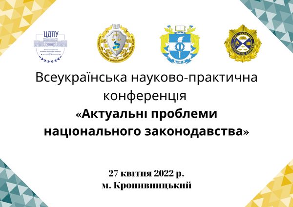 27 квітня 2022 року на базі факультету історії, бізнес-освіти та права Центральноукраїнського державного педагогічного університету імені Володимира Винниченка відбулася Всеукраїнська науково-практична конференція «Актуальні проблеми національного законодавства». Традиційно співорганізаторами конференції є Національний юридичний університет імені Ярослава Мудрого, Кременчуцький національний університет імені Михайла Остроградського та Кіровоградський науково-дослідний експертно-криміналістичний центр МВС України.