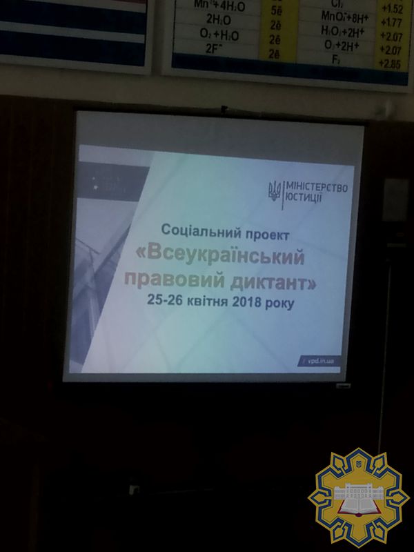25 квітня 2018 року студенти-правознавці ІІІ курсу факультету історії та права ЦДПУ ім. В.Винниченка взяли участь у соціальному проекті «Всеукраїнський правовий диктант», який проводився за ініціативою ТОВ «Експертна юридична служба» та підтримки Міністерства юстиції України на базі Центральноукраїнського національного технічного університету.