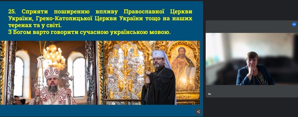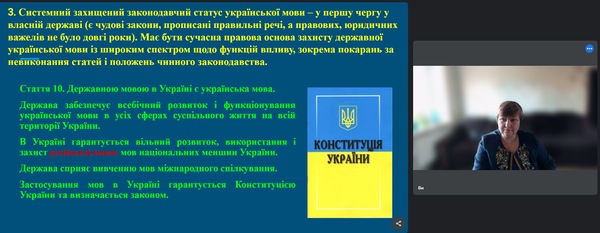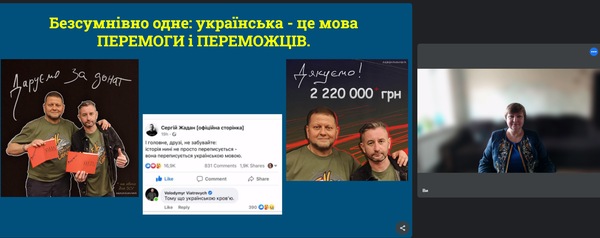 У спеціально підготовленій до заходу презентації поділилася з добірним товариством своїми думками про те, що варто робити державі, суспільству, кожному, щоб українська мова утверджувалася і як державна на наших теренах, і як майбутня мова Європейського Союзу та світова.
