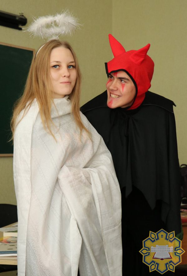 Сьогодні, 31 жовтня, студенти 1-2 курсів факультету іноземних мов провели захід, присвячений Дню всіх святих (aka HALLOWEEN). У гості до студентів завітали й учні-ліцеїсти. Час провели з користю (повторили матеріал, вивчений за перші місяці семестру) і дуже весело! Студенти представили підготовлені номери, а потім взяли участь у конкурсах. Кого тільки тут не було: чорт і янгол, відьми й екстрасенси, інша дрібна нечисть! Також глядачі мали змогу зазирнути в студентське потойбіччя та на власні очі побачити найпотаємніші страхи студентів, а саме:
