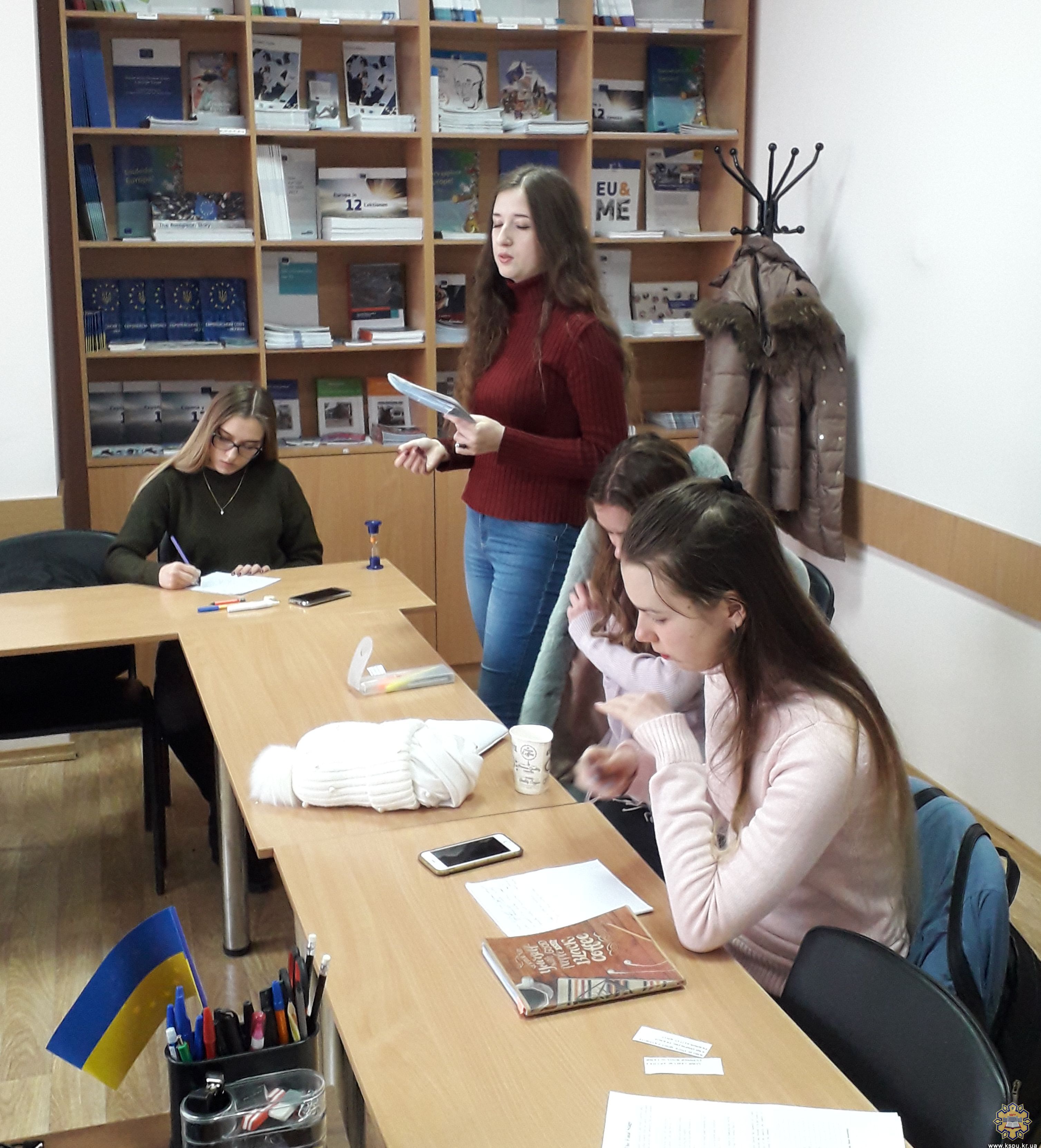 У фіналі, який відбувся 20 грудня, студентам було запропоновано декілька комунікативних завдань, за допомогою яких вони могли продемонструвати вміння давати оригінальні й влучні відповіді на несподівані запитання, аргументовано розкривати обрану тему та виголошувати промову. Для оцінювання монологічних висловлювань студентів були запрошені доцентиКібальнікова Т.В. і Дацька Т.О.