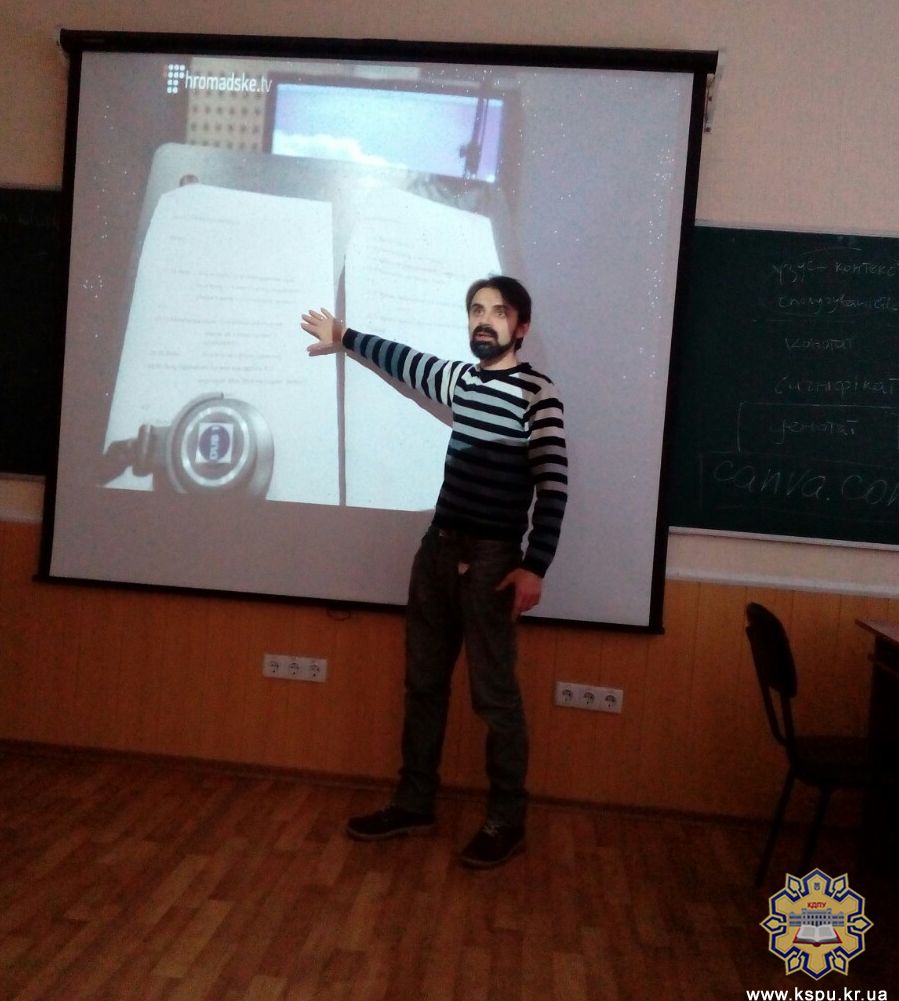 Богдан Вікторович докладно пояснив, чому так складно виконати якісну «озвучку» відео, скільки в Україні є професійних студій для дублювання фільмів та як вони оснащені, скільки людей працює над перекладом одного фільму та як працюють актори, чиїми голосами розмовляють у перекладі фільмів наші улюблені кіногерої. Крім того, учні довідались, як готують фахівців на кафедрі перекладу, прикладної та загальної лінгвістики, та якими здобутками своїх випускників пишається перекладацьке відділення факультету іноземних мов ЦДПУ ім. В. Винниченка.