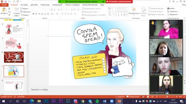 І знаєте, ми все-таки це зробили! І стали іншими. Я слухала виступи своїх одногрупників на підсумковій конференції і лише тепер розуміла давно почуте на якомусь із занять з методики, що найкраще людина опановує те, до чого дійшла практично, що відчула, «помацала» своїми руками. Кожна фраза, висловлена моїми друзями, відбивалася в серці радістю, що тепер ми вже не боїмося ані змішаного, ані дистанційного навчання. А ще справжнім мотиватором для нас стали слова нашого керівника практики про те, що кожен із нас – це унікальний всесвіт ідей, методик, прийомів способів, що можуть бути використані в сучасній українській школі.