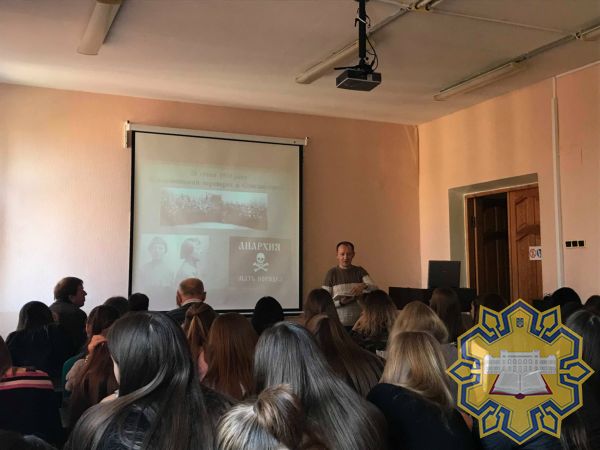 Юрій Митрофаненко, мандрівний історик, як він себе називає, провів нас стежками процесу перевидання повісті Ю.Яновського та розповів багато цікавих історичних фактів, які лягли в основу твору.