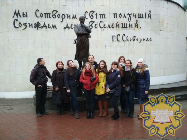 Студенти-філологи ЦДПУ ім. В.Винниченка 15-16 грудня 2017 року здійснили навчальну поїздку до Харкова. Дводенна програма була дуже насиченою – це і знайомство зі студентами й викладачами Харківського національного педагогічного університету ім. Григорія Сковороди та Харківського національного університету мистецтв імені І. Котляревського. І відвідання театру «Березіль» імені Леся Курбаса, візити до літературного та художнього музеїв, вшанування могил М. Хвильового та В. Елана-Блакитного. У ході вуличної екскурсії завітали до будинку «Слово», відвідали пам’ятки культури – будинки Художників та Архітекторів, приміщення імператорського палацу, в якому, за сприяння Г. Квітки-Основ’яненка, було засновано інститут імені В. Каразіна, помилувалися найкращим зразком радянського конструктивізму 20-х рр. – будинком Держпрому та встигли почути і побачити ще багато чого іншого. Спробую розповісти про все по-порядку і стисло.