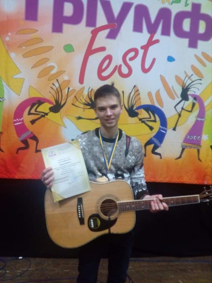 Факультет філології та журналістики вітає студента першого курсу Дениса Бірзула з перемогою у VIII Міжнародному багатожанровому фестивалі мистецтв «Свято талантів. Творчий проект «Тріумф-Fest». Денис здобув перемогу в номінації «Авторська пісня (молодіжна категорія)» і нагороджений дипломом лауреата І ступеня.