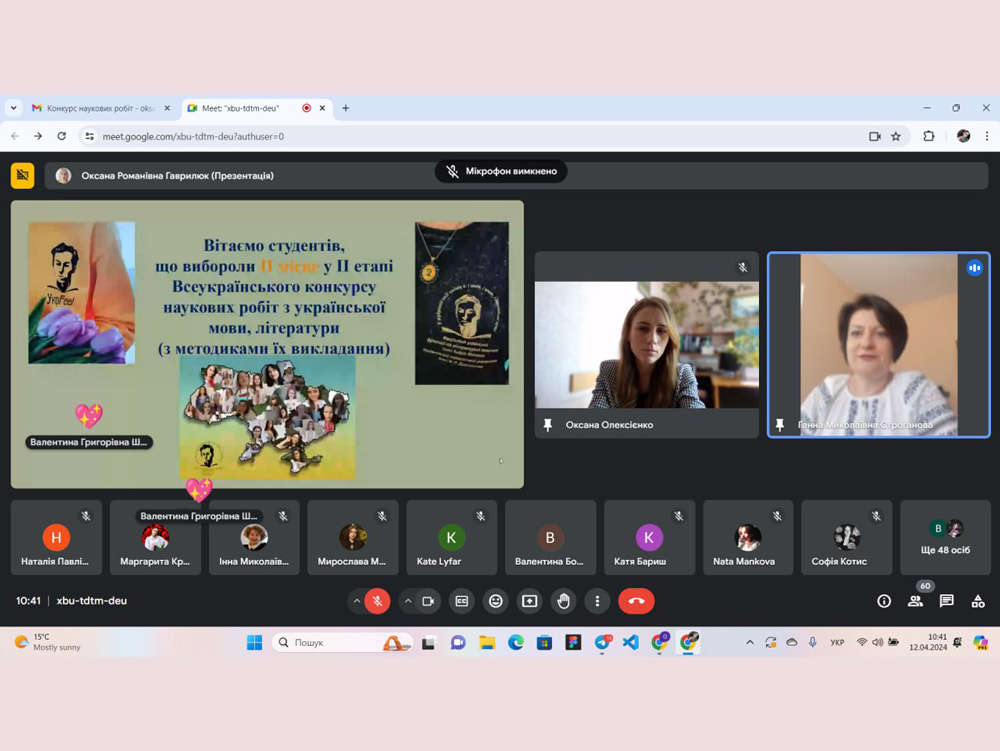 12 квітня 2024 року відбулась підсумкова конференція, оголошення переможців Всеукраїнського конкурсу студентських наукових робіт. Конкурс відбувався в декілька етапів, студентки факультету української філології, іноземних мов та соціальних комунікацій гідно представили свої роботи та отримали високу оцінку.