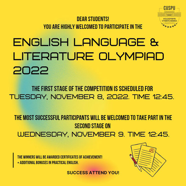 Dear students of Bachelor's (2,3,4 years) and Master's programs, speciality: "English Language and Literature"!