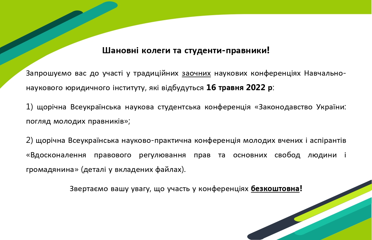 Навчально-науковий юридичний інститут ПНУ запрошує до участі у щорічних наукових конференціях