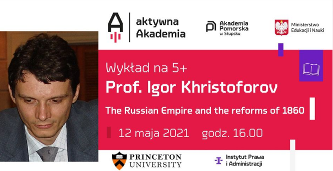 Маємо запрошення від наших партнерів, Поморської Академії в Слупську (Польща) взяти участь у лекції, яку прочитає професор Ігор Христофоров. Ігор Христофоров є професором Принстонського університету на кафедрі історії. Темою доповіді є: "Російська Імперія та реформи 1860»