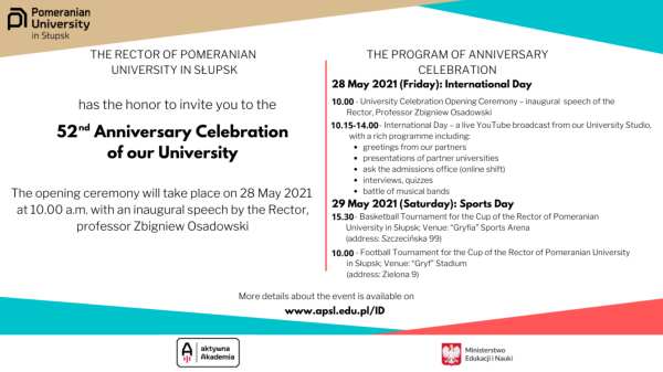 Партнер Центральноукраїнського педагогічного університету ім. В.Винниченка Поморська академія в Слупську запрошує студентів та викладачів на International Day, організований в рамках святкування 52-ї річниці з дня її заснування.