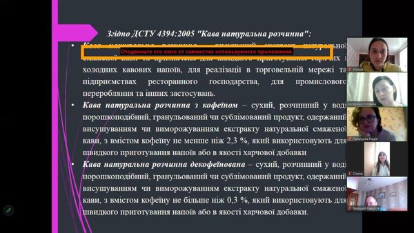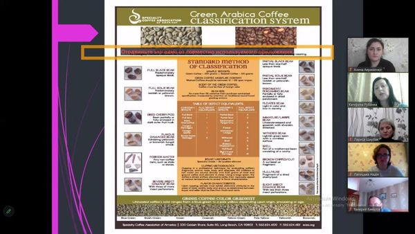 23.11.2023 року здобувачі вищої освіти першого (бакалаврського) рівня спеціальності 014 Середня освіта (Природничі науки) в рамках онлайн лекторію прослухали лекцію кандидата технічних наук, доцента кафедри технології консервування Національного університету харчових технологій (м. Київ) Катерини Володимирівни Рубанки на тему: «Технологія виробництва кави натуральної».