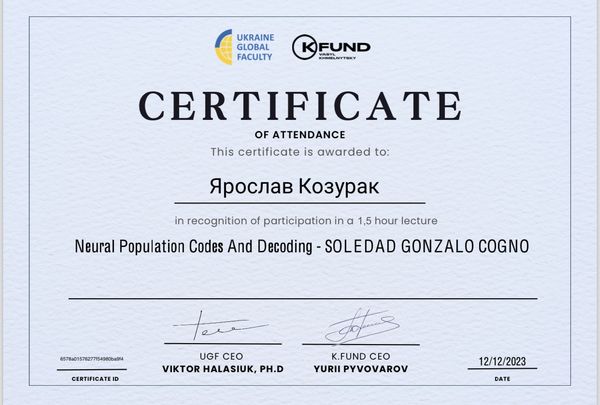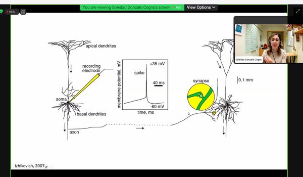 28 листопада 2023 року здобувачі освіти спеціальності 014 Середня освіта (Природничі науки) змогли прослухати лекцію наукової співробітниці та керівниці дослідницької групи в Інститут системної нейронауки ім. Кавлі Норвезького університету науки і технологій, PhD у галузі комп'ютерної нейронауки Soledad Gonzalo Cogno – «Introduction To Neuroscience And Neural Coding». Soledad Gonzalo Cogno — працювала та навчалася в лабораторії Мей-Брітт Мозер та Едварда Мозера, лауреатів Нобелівської премії з фізіології та медицини 2014 року. Авторка досліджує, як активність окремих нейронів координується на рівні нейронної мережі, і як ця координація впливає на пізнання та поведінку людини. Для реалізації своєї наукової мети вона поєднує свій досвід у галузі комп'ютерної нейробіології з найсучаснішими методами фіксації великих популяцій нейронів.
