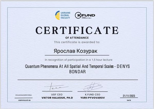 Зокрема 21 листопада 2023 року здобувачі освіти 3-го та 4-го курсів спеціальності 014 Середня освіта (Природничі науки) прослухали лекцію професора фізики на факультеті фізики та інженерної фізики університету Тулейн (США) Denys Bondar – «Quantum phenomena at all spatial and temporal scales». Результати досліджень автора опубліковані у всесвітньо відомих наукових виданнях Quantamagazine, Nature Materials, Physics, PhysicsWorld, US Army та інших. Професор закінчив з відзнакою Ужгородський національний університет у 2006 році. У 2011 Denys Bondar отримав ступінь PhD in Physics в Університеті Ватерлоо, Канада, після чого протягом 7 років викладав у Прінстонському університеті (Нью-Джерсі, США). Має багато відзнак як молодий вчений, у т.ч.: W. M. Keck Foundation Award та Young Faculty Award DARPA.