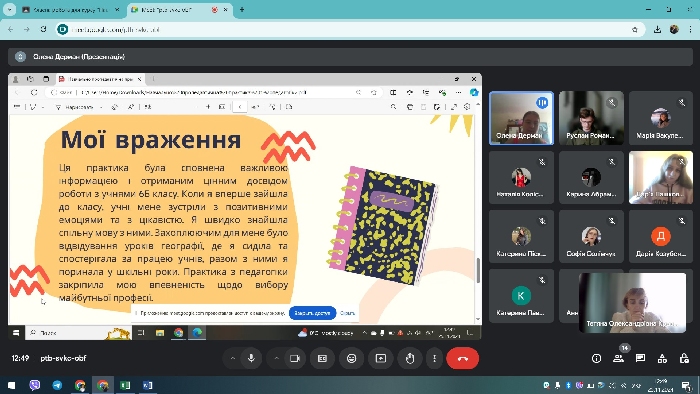 25 листопада відбулася підсумкова конференція за результатами навчальної (пропедевтичної) практики з педагогіки, яку студенти третього курсу факультету математики, природничих наук та технологій проходили з 18 по 22 листопада 2024 року у закладах загальної середньої освіти міста та області.
