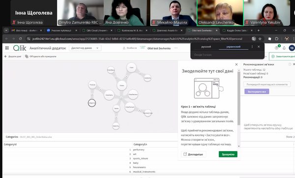 За результатами навчання викладачів у першому семестрі 2024-2025 н. р. кафедра менеджменту на підприємництва впровадила використання платформи Qlik Sense у вибіркову освітню компоненту «Бізнес аналітика: прикладні аспекти». Практичні заняття проходили в бінарному форматі: викладач Яна Довгенко разом з Олександром Бойко, представником роботодавця (RBC Group), практиком-тренером (ВІ консультантом) забезпечили освітній процес даної освітньої компоненти.