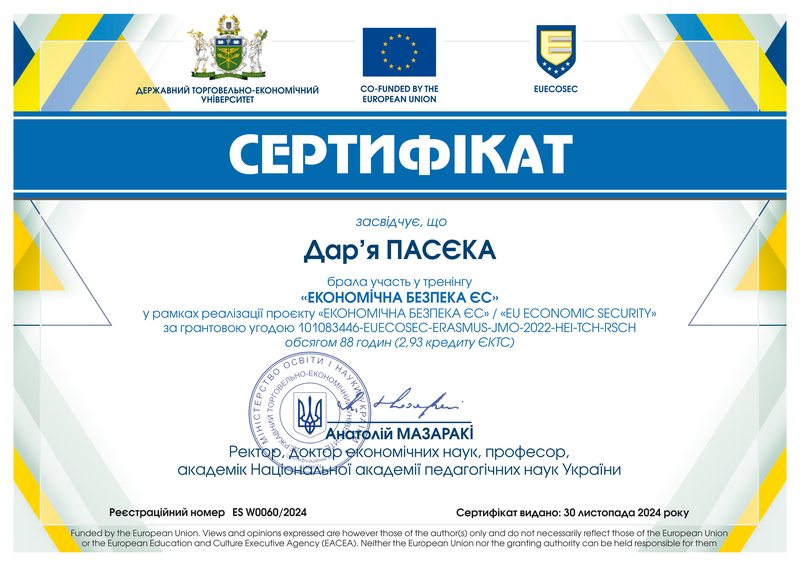 Активно завершили доволі продуктивний семестр 2024-2025 навчального року викладачі кафедри менеджменту та підприємництва ЦДУ ім. В. Винниченка. Разом зі студентами спеціальності 051 Економіка ОП Економічна безпека груп ЕК22Б, ЕК22БС та ЕК24Б приймали участь в семінарі-конференції «Забезпечення економічної безпеки ЄС в умовах гібридних загроз», що відбувалась у рамках 5 і 6 модулів проєкту «Економічна безпека ЄС (EUECOSEC)» та отримали сертифікати про підвищення кваліфікації.