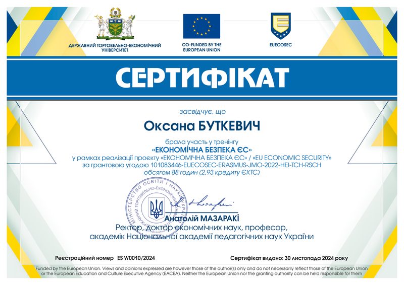Стажування викладачів і студентів кафедри менеджменту та підприємництва на проєкті «Економічна безпека ЄС (EUECOSEC)»