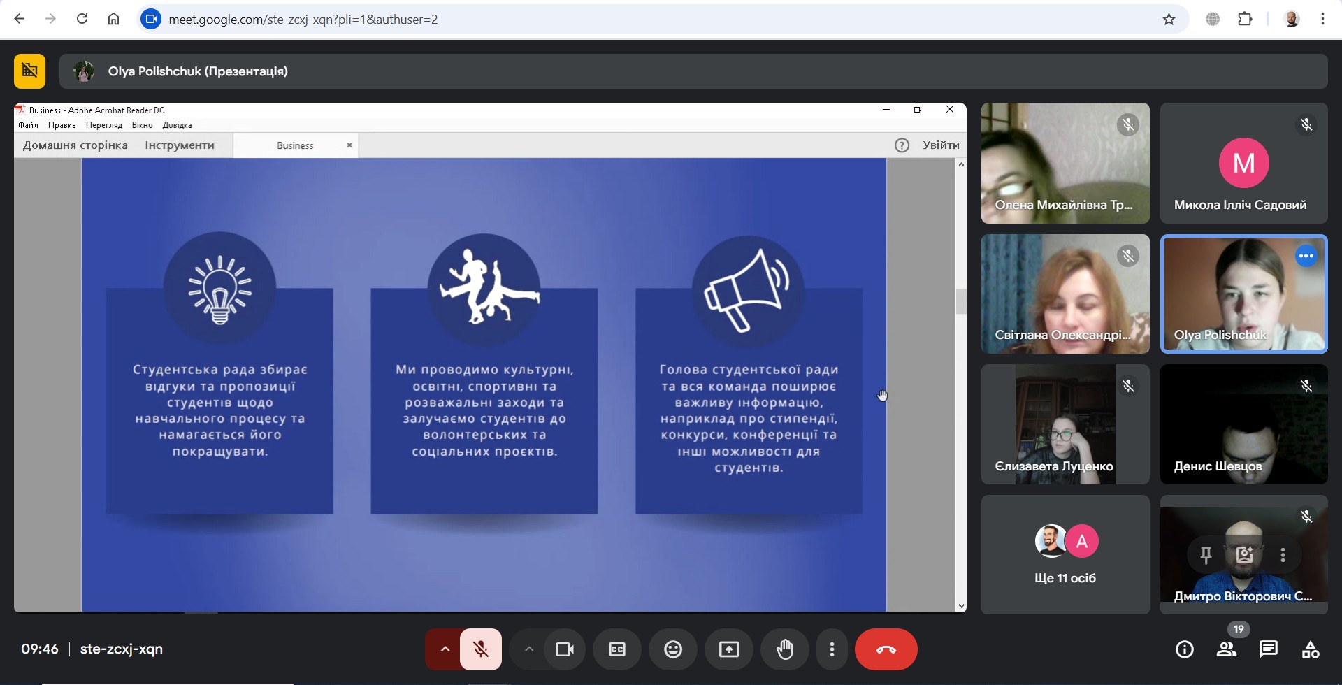 - Побіяха Софія (ЦТ23Б): Запитала про основні труднощі, з якими стикається студентська рада. Ольга відповіла: "Проблеми завжди є, але немає таких, які ми не змогли б вирішити. Усі труднощі лише зміцнюють нашу команду".