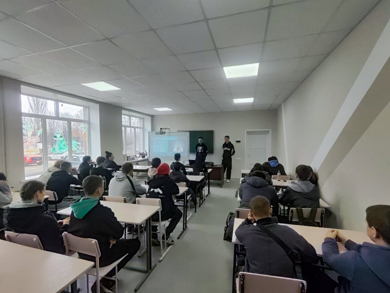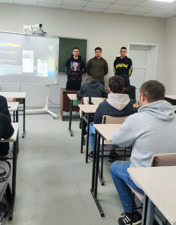 Студенти Центральноукраїнського державного університету імені Володимира Винниченка спеціальності 015 Професійна освіта (за спеціалізаціями), спеціалізація 015.39 Цифрові технології, Бокатенко Михайло, Урсу Олександр і Чернуха Богдан провели пізнавальний захід для учнів шостої та тринадцятої груп Кропивницького професійного ліцею. Темою зустрічі стала «Медіаграмотність у сучасному просторі».