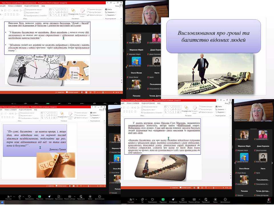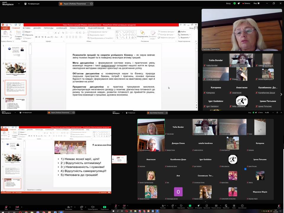 Участь викладачів та здобувачів ВО кафедри менеджменту та підприємництва ЦДУ імені Володимира Винниченка в онлайн-лекції на тему «Психологія грошей та секрети успішного бізнесу»