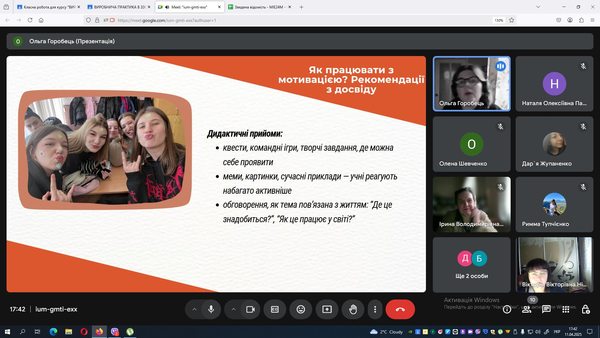 Усі доповіді практикантів були надзвичайно важливими та актуальними, викликали зацікавлення та обговорення запропонованих матеріалів та продемонстрували високий рівень підготовки студентів до їх майбутньої педагогічної діяльності!