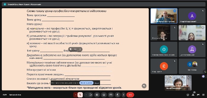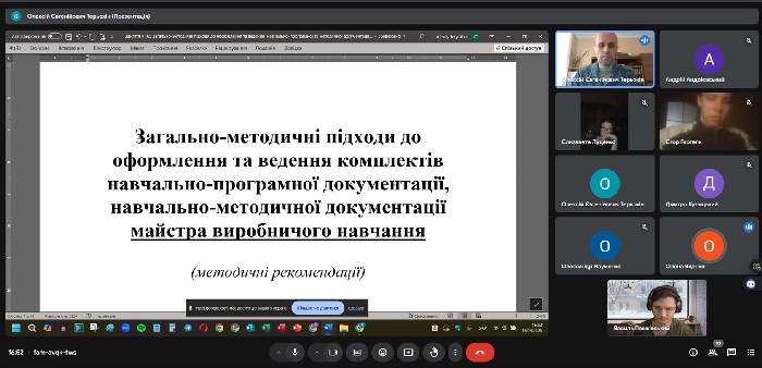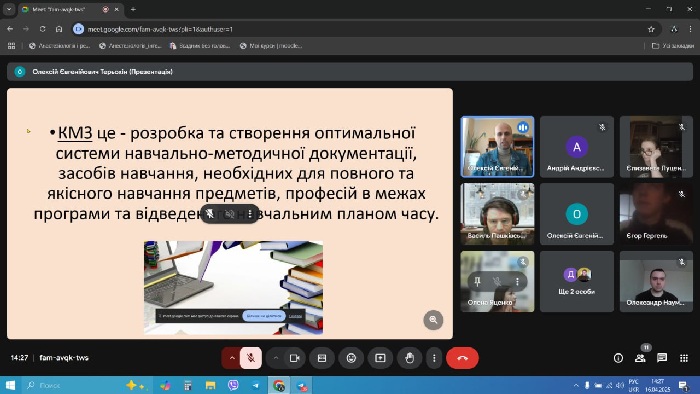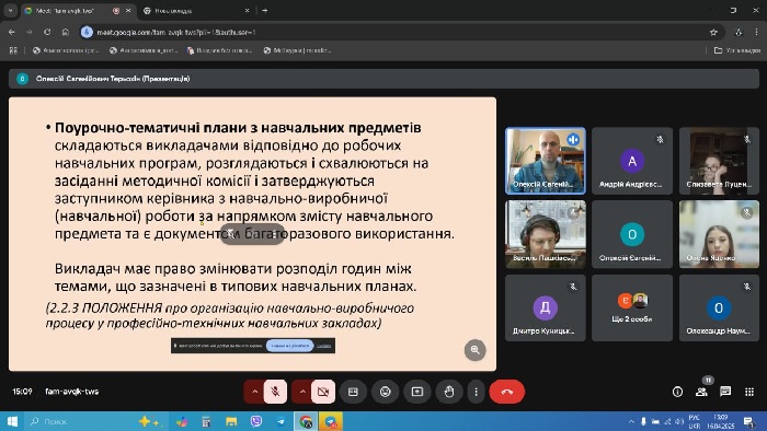 Олексій Євгенійович презентував загально-методичні підходи до оформлення комплектів навчально-програмної документації та навчально-методичних матеріалів майстра виробничого навчання.